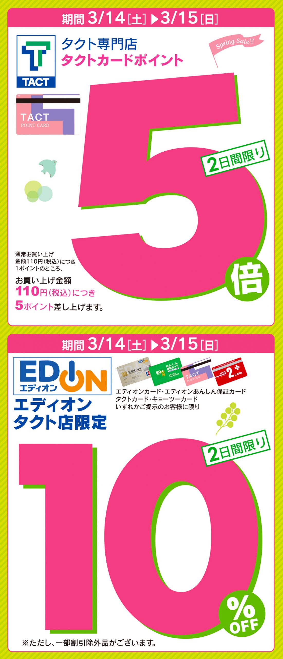 タクトカードポイント5倍出し 2日間限り